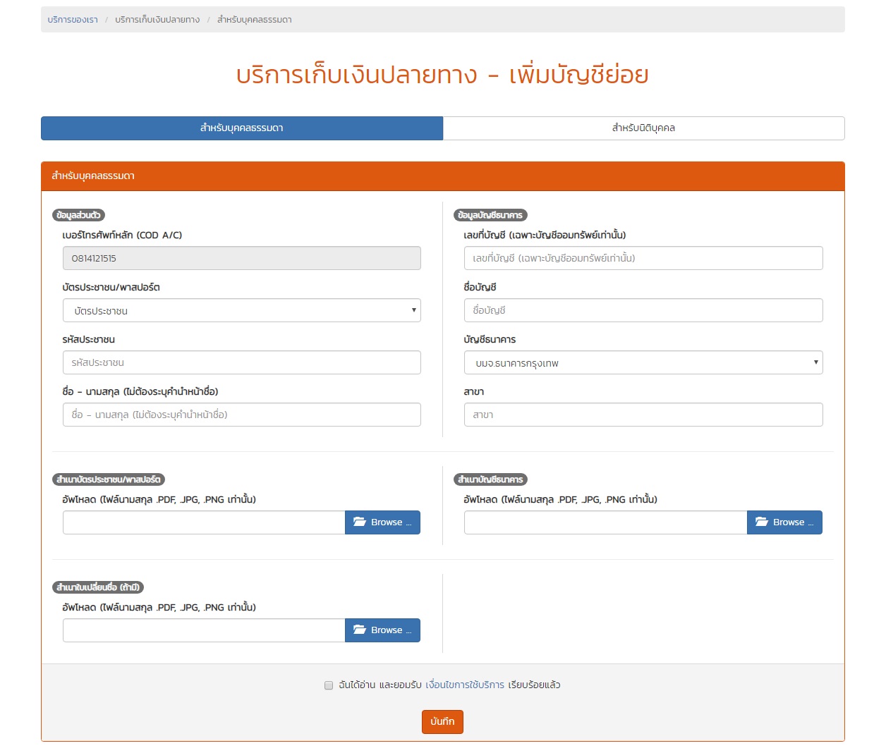 2. เลือกสมัครเก็บเงินปลายทาง